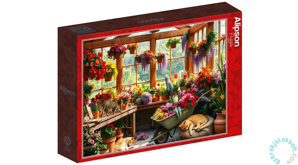 Két cica békésen szundikál a növényekkel teli üvegházban, míg a harmadik felfedezőútra indul. Az Alipson 1000 db-os puzzle - Nap in the Greenhouse (50256) nyugalmat és melegséget áraszt.