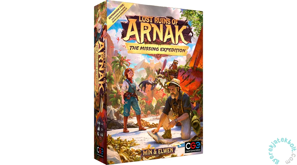 Az Arnak elveszett romjai - Az eltűnt expedíció KIEGÉSZÍTŐ egy szuper kiegészítő, amely két vadonatúj expedícióvezetőt, új kutatássávokat, ereklyéket, eszközöket és egy kampányt is hozzáad pluszban az alapjátékhoz. Ezúttal a feladat, hogy megtaláljuk hová tűnt Kutil professzor expedíciója.. A játékhoz szükség van az Arnak elveszett romjai társasjátékra, hogy együtt tudják használni a kiegészítőt.