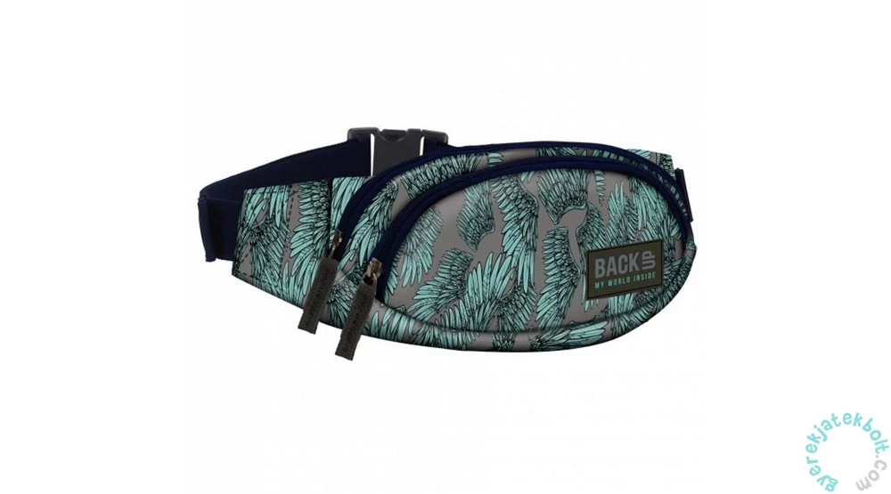 A BackUp kétzsebes övtáska - Wings kisebb és nagyobb korosztály ruhatárának praktikus kiegészítője. Elején két nagyobb, hátoldalán egy kisebb cipzáras zseb található, melyekben kényelmesen el tudod rendezni holmidat. Az állítható pántnak és a nagyméretű, könnyen kezelhető csatnak köszönhetően többféle képen is hordható. A szárny mintás övtáska remek választás kirándulások, séták alkalmával.