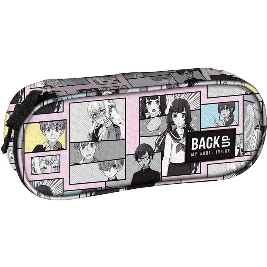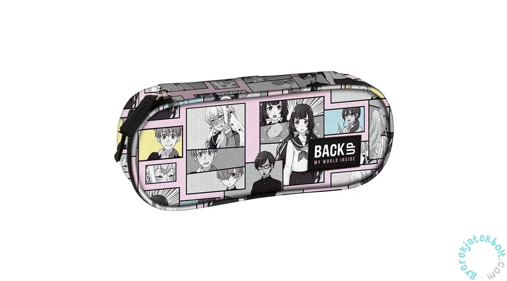 BackUp Mangás ovális tolltartó - Animedivatos színösszeállításban, manga szereplőkkel díszítve. Egyterű belsejében praktikus felhajtható fül is található, melynek egyik oldalán kis cipzáras zseb van, másikon gumifülek tollnak, ceruzának. Az összes írószer elfér benne, amire az iskolában szükséged lehet.