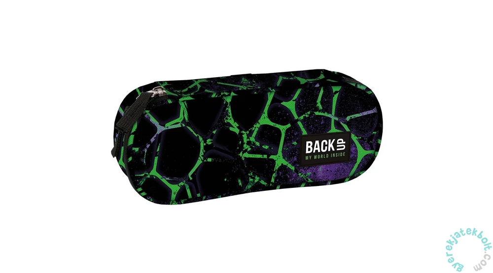 BackUp ovális tolltartó - Black, green (PB7A52). Egyterű belsejében praktikus felhajtható fül is található, melynek egyik oldalán kis cipzáras zseb van, másikon gumifülek tollnak, ceruzának. Az összes írószer elfér benne, amire az iskolában szükséged lehet.