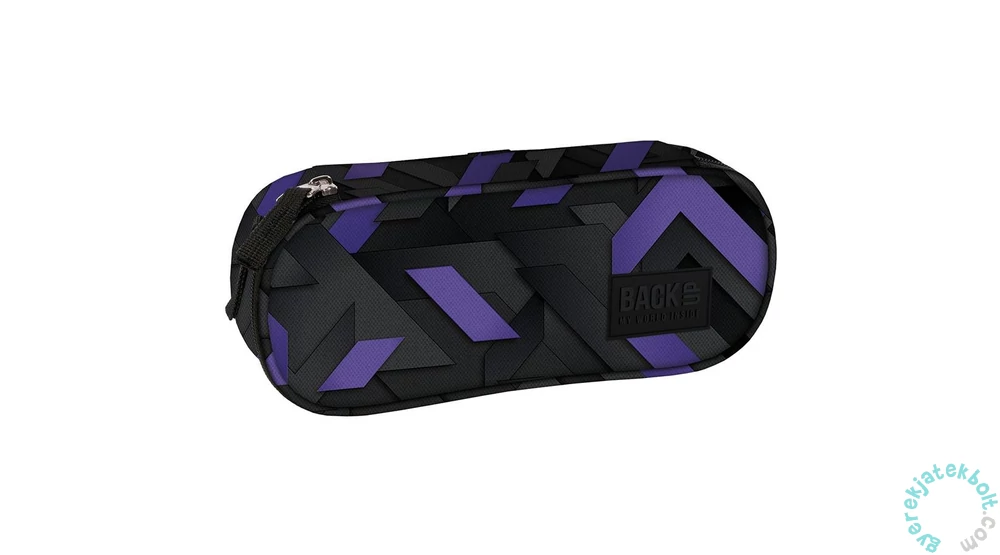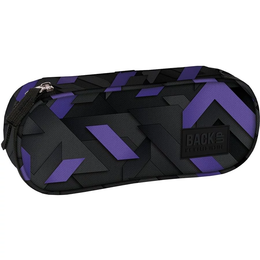 BackUp ovális tolltartó - Black, purple (PB7A47). Egyterű belsejében praktikus felhajtható fül is található, melynek egyik oldalán kis cipzáras zseb van, másikon gumifülek tollnak, ceruzának. Az összes írószer elfér benne, amire az iskolában szükséged lehet.