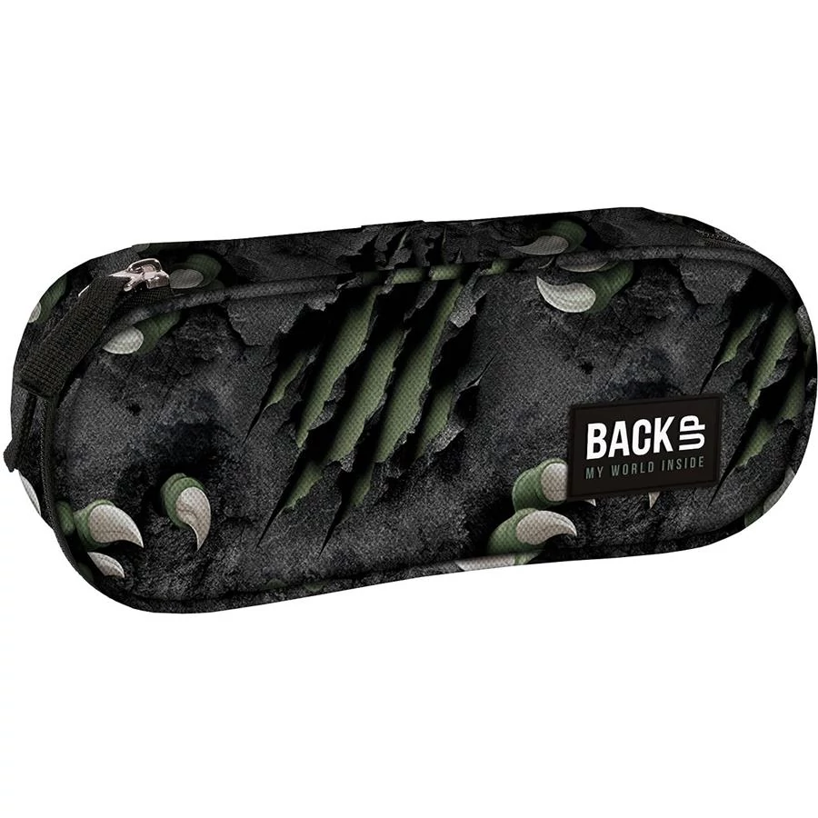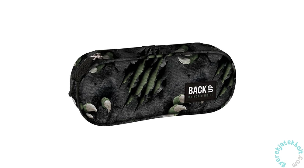 BackUp ovális tolltartó - Karmok (PB7A62). Egyterű belsejében praktikus felhajtható fül is található, melynek egyik oldalán kis cipzáras zseb van, másikon gumifülek tollnak, ceruzának. Az összes írószer elfér benne, amire az iskolában szükséged lehet.