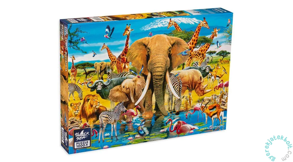 A szavanna lüktető élete elevenedik meg zsiráfokkal, oroszlánokkal, madarakkal és sok-sok csodás álattal. A Black Sea 1000 db-os puzzle - Life in the Savanna (BS72205) képe dinamikus és életteli.
