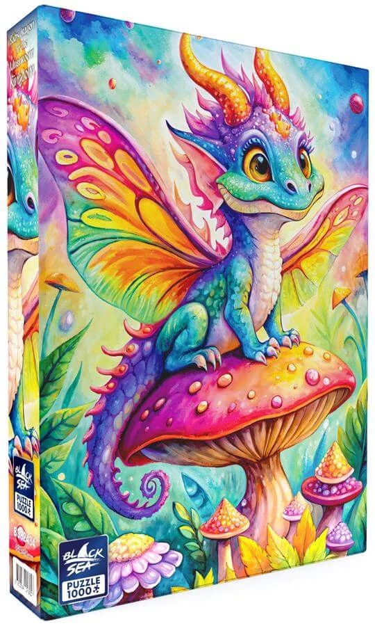 Aranyos kis sárkány rejtőzik a gombák varázslatos birodalmában. A Black Sea 1000 db-os puzzle - Baby dragon in the Mushroom Kingdom (BS82434) színes, mesés világa gyermeki kíváncsiságot ébreszt minden korosztályban.