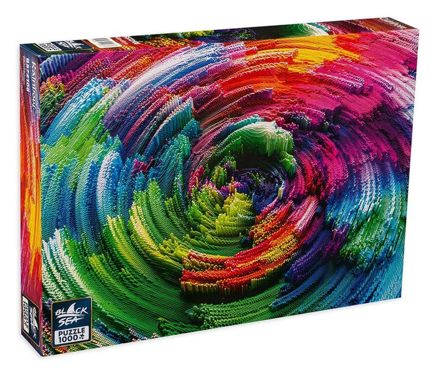 Egy modern és vibráló szivárványszínű örvény jelenik meg a Black Sea 1000 db-os puzzle - Rainbow (BS72108) képén. Vidám, élénk és magával ragadó.