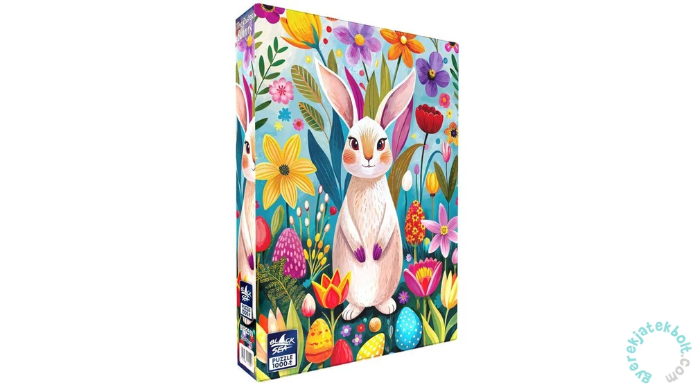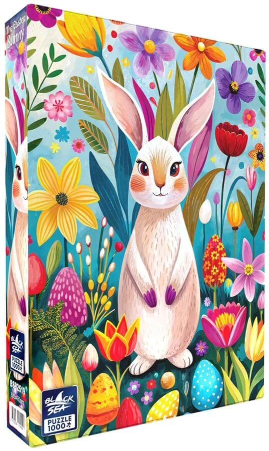 A húsvéti nyuszi színes tojások és virágok között bukkan fel, játékos, ünnepi hangulatot teremtve. A Black Sea 1000 db-os puzzle - The Easter Bunny (BS82519) képe igazi tavaszi örömforrás a kirakózás szerelmeseinek.