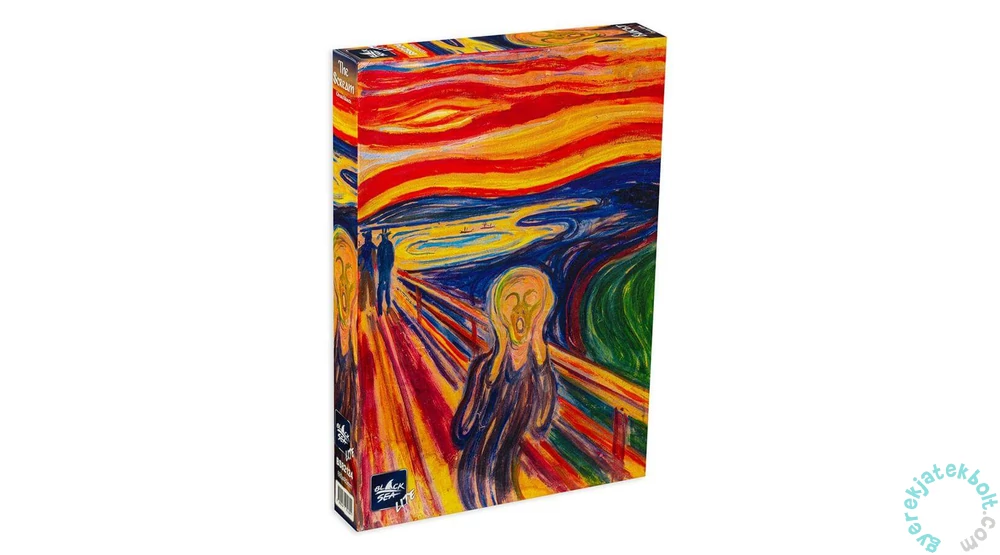 Edvard Munch expresszionista remekműve intenzív érzelmeket és belső feszültséget ábrázol. A Black Sea 1000 db-os puzzle - The Scream (BS82124) képének drámai és elgondolkodtató hatása igazi kihívást jelent a művészet és kirakózás szerelmeseinek.