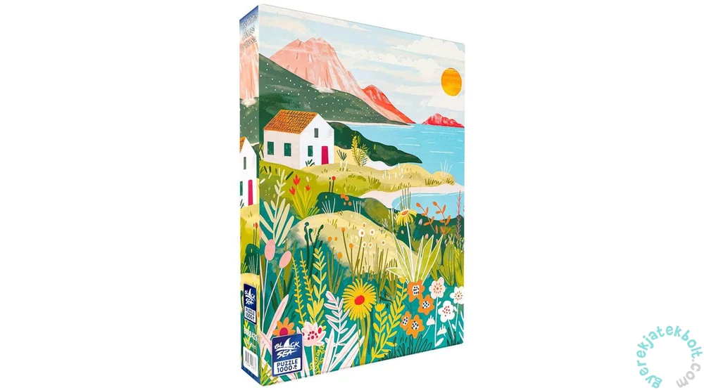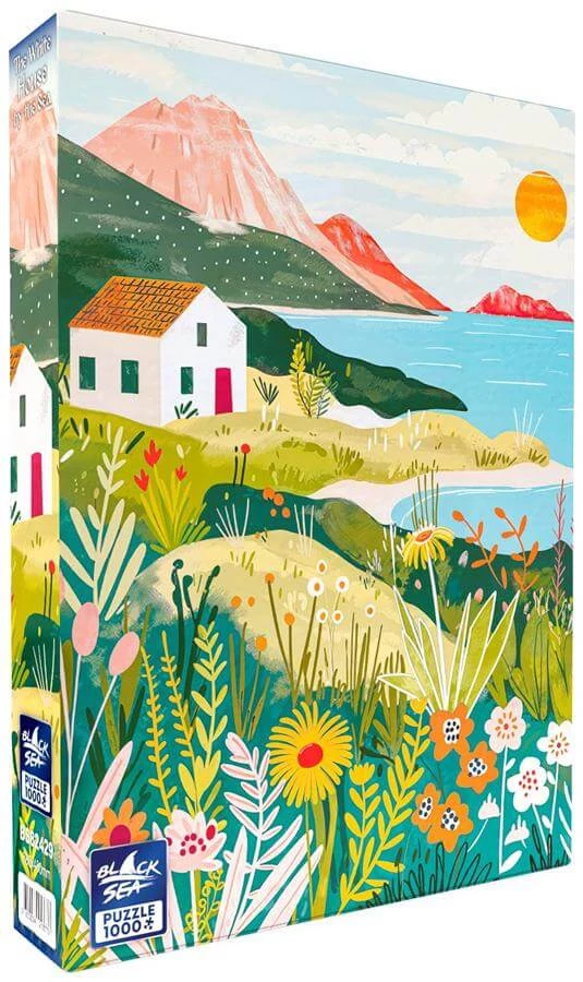 Egy idilli tengerparti látvány tárul eléd a Black Sea 1000 db-os puzzle - The White House by the Sea (BS82429) képén, ahogy a nap sugarai megcsillannak a vízen. Romantikus és békét árasztó tájkép