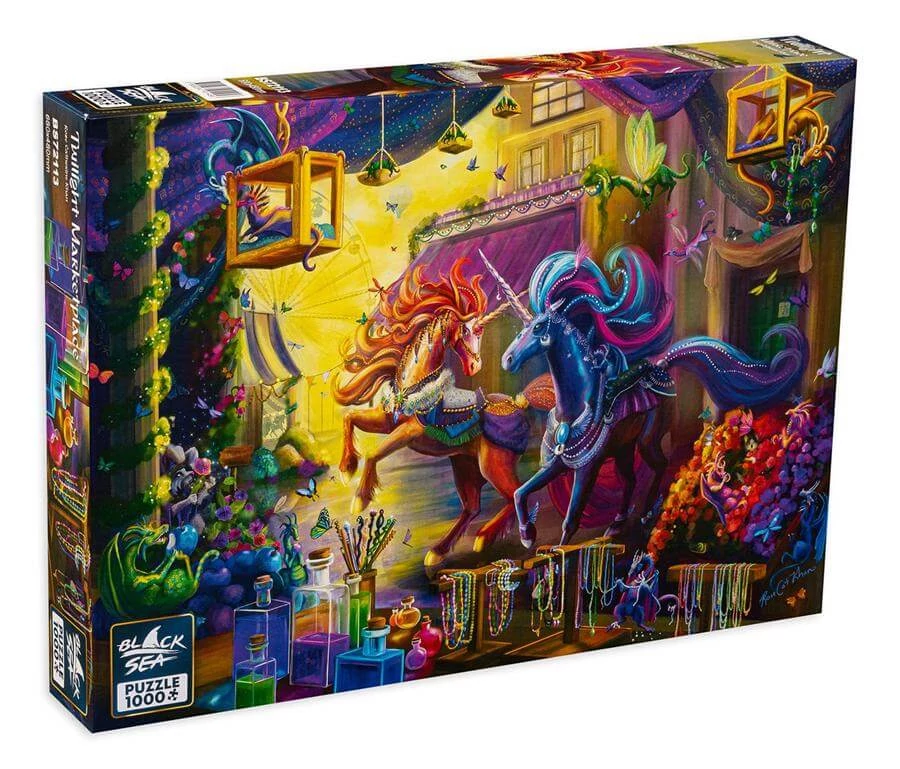 Az alkonyati fényben úszó keleti piacon igazán különleges portékákra lelhetünk. A Black Sea 1000 db-os puzzle - Twilight Marketplace (BS72113) hangulatos képe egzotikus világba repít.