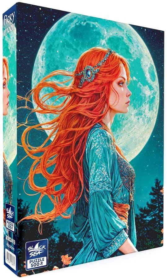A csodás telihold uralja az éjszakai eget, miközben egy rejtélyes női alak tart az erdőbe. A Black Sea 500 db-os puzzle - Fiery Moon (BS82419) misztikus és erőteljes hangulatú.