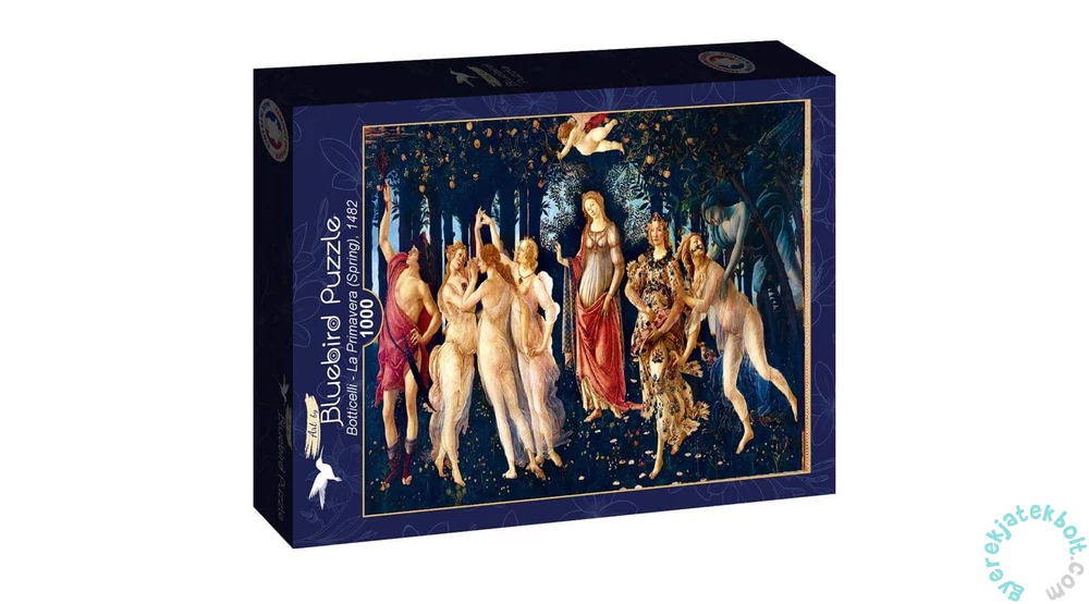 Az 1000 db-os Bluebird puzzle - Botticelli - La Primavera (Spring) 1482 című képén az olasz reneszánsz festő, Sandro Botticelli híres művét, a Tavaszt láthatjuk.