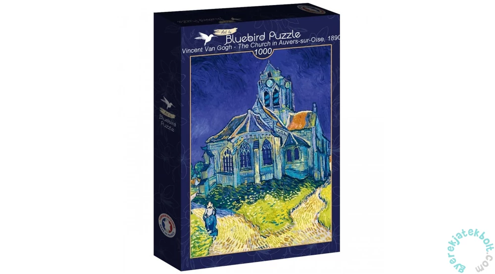 Az 1000 db-os Bluebird Art by puzzle képén az egyik leghíresebb, holland posztimpresszionista festőművész az Auvers-i templomot örökítette meg. Eltérően a többi impresszionista festőtől, Van Gogh nem próbálta meg a fényjáték benyomását kelteni az emlékműben. Bár a templom felismerhető marad, a festmény nem annyira a valósághű képét kínálja a nézőnek, mint inkább a templom "kifejezésének" egy formáját.