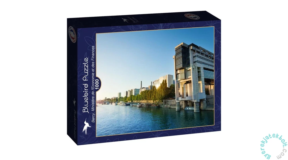 A Bluebird 1000 db-os puzzle - Bercy, Ministère de l'Economie et des Financess című képén az 1988-ban épült francia Gazdasági- és Pénzügyminisztérium látható. A modern irodaépület Párizsban, a Szajna partján található.
