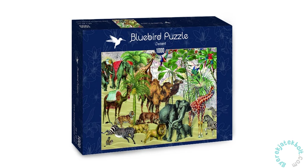 Az 1000 db-os Bluebird - Desert puzzle képén a német Barbara Behr formatervező egyik alkotása látható, melyen a sivatagban élő, különleges állatok láthatók.