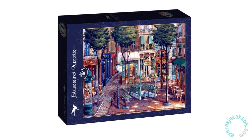 A párizsi metrólejáró környéke igazi békebeli idillt idéz a friss virágokkal és pékáruval. Fedezd fel a nosztalgikus hangulatú kép csodás részleteit és kapcsolódj ki a Bluebird 1000 db-os puzzle - Metro (90998) kirakóval!