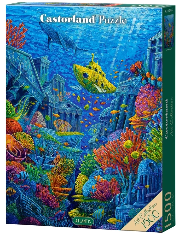 A Castorland 1500 db-os Art Collection puzzle - Atlantisz című képen Roch Urbaniak lengyel festőművész ábrázolásában a színpompás tenger alatti világ egy része elevenedik meg.