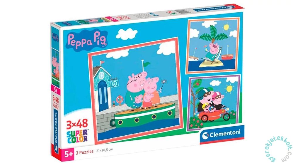 Peppa és családja vidám kalandjai elevenednek meg ezen a három aranyos kirakón. A Clementoni 3 x 48 db-os puzzle - Peppa malac (25293) ideális választás óvodás korú gyerekeknek.