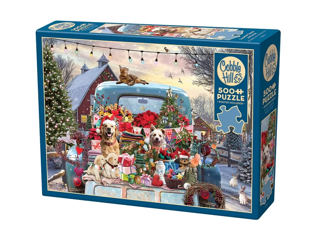 A Country Truck in Winter 500 darabos puzzle (45127) egy hangulatos, téli vidéki jelenetet ábrázol, ahol egy régi teherautó hóborította tájban áll rajta cuki állatok karácsonyi ruhában várják a télapó érkezését. A 500 darabos kihívás ideális azoknak, akik szeretnek téli, hangulatos és természetközeli témájú puzzle-öket kirakni, miközben fejlesztik koncentrációjukat és türelmüket. A Cobble Hill jellegzetes minőségének köszönhetően a darabok pontosan illeszkednek, a kész kép stabil és dekorációként is látványos, így tökéletesen mutat otthon, irodában vagy téli hangulatú helyiségekben.