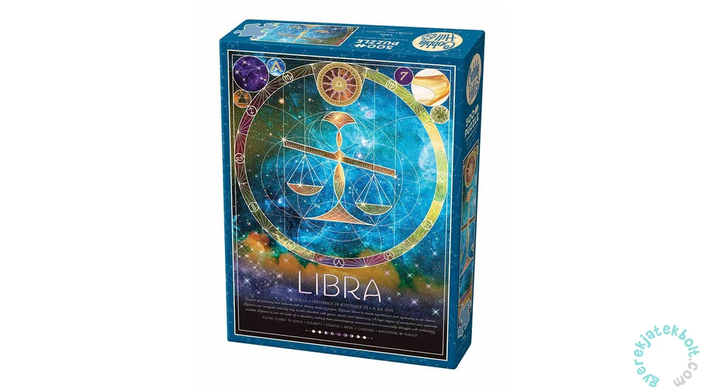 Ezen a Cobble Hill 500 db-os puzzle - Libra (45017) kirakón a Mérleg csillagjegy látható. A harmónia és az egyensúly szerelmesei, erős igazságérzettel, minden téren egyensúly és szimmetria megteremtésére törekszenek. A Mérlegek gyakorlatilag bármilyen társadalmi helyzetben képesek elegánsan, bájosan és diplomatikusan eligazodni.