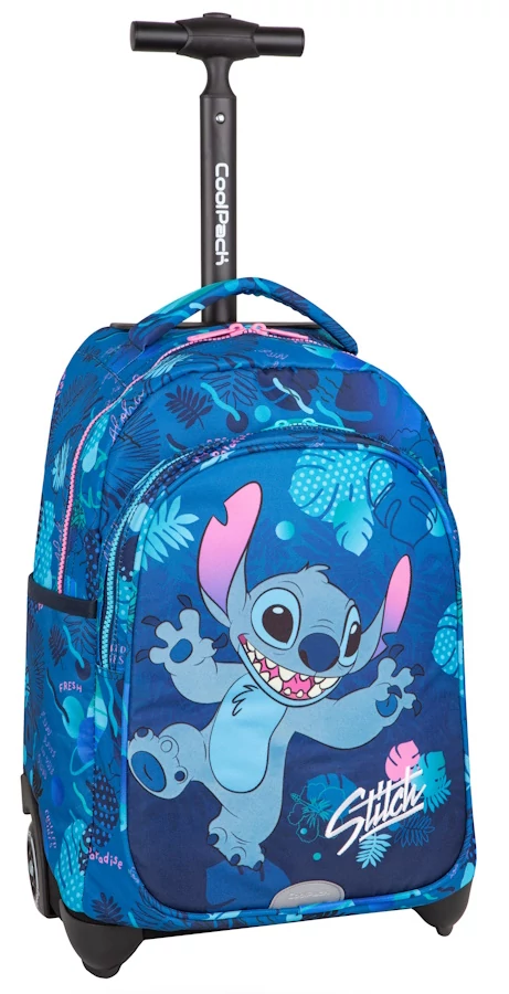 A népszerű disney karakter, Stitch képével dekorált Coolpack - Jack gurulós iskolatáska, hátizsák - 2 rekeszes - Disney Stitch (F107780) az iskolás korosztály ruhatárának divatos kiegészítője. A hátizsák 2 különböző méretű, cipzáras rekesszel rendelkezik. Strapabíró kerekeken gurul, a hátizsák háton is hordható. Két nagy rekeszében könnyedén elfér az A4-es formátum, ami az iskolai tankönyvek hagyományos mérete. A hátizsák oldalán két zseb található, amelyekben szabadon és biztonságosan tárolhatod a kulacsodat. Sőt, a hátizsák számos tulajdonsággal rendelkezik, amelyek elősegítik a praktikus használatot. A táska fogantyúja 2 fokozatban állítható a gyermek magasságához mérten. A párnázott vállpántok állítható hosszúságúak és a tetején lévő megerősített fogantyúval kézben is kényelmesen vihető. A hátizsák alsó része megerősített, kemény műanyag borítású. Vállpántját és oldalait fényvisszaverő elemek díszítik a gyermekek biztonságának érdekében. A hátizsákban több kisebb rendszerező is található az apró kiegészítők számára. A Coolpack - Jack gurulós iskolatáska, hátizsák - Disney Stitch (F107780) a kisebb korosztály számára nagyon vonzó. A táska anyaga vízlepergető.