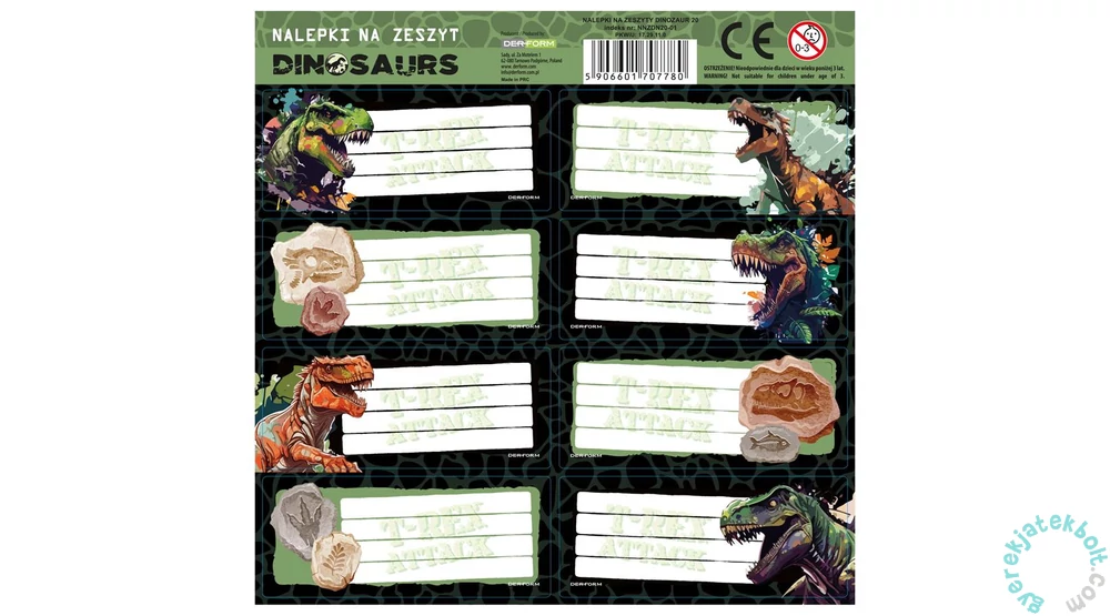 Dinoszauruszos 8 db-os füzetcímke - T-Rex Attack (NNZDN20) vagány, dínós mintával. Az ár 1 ívre értendő.