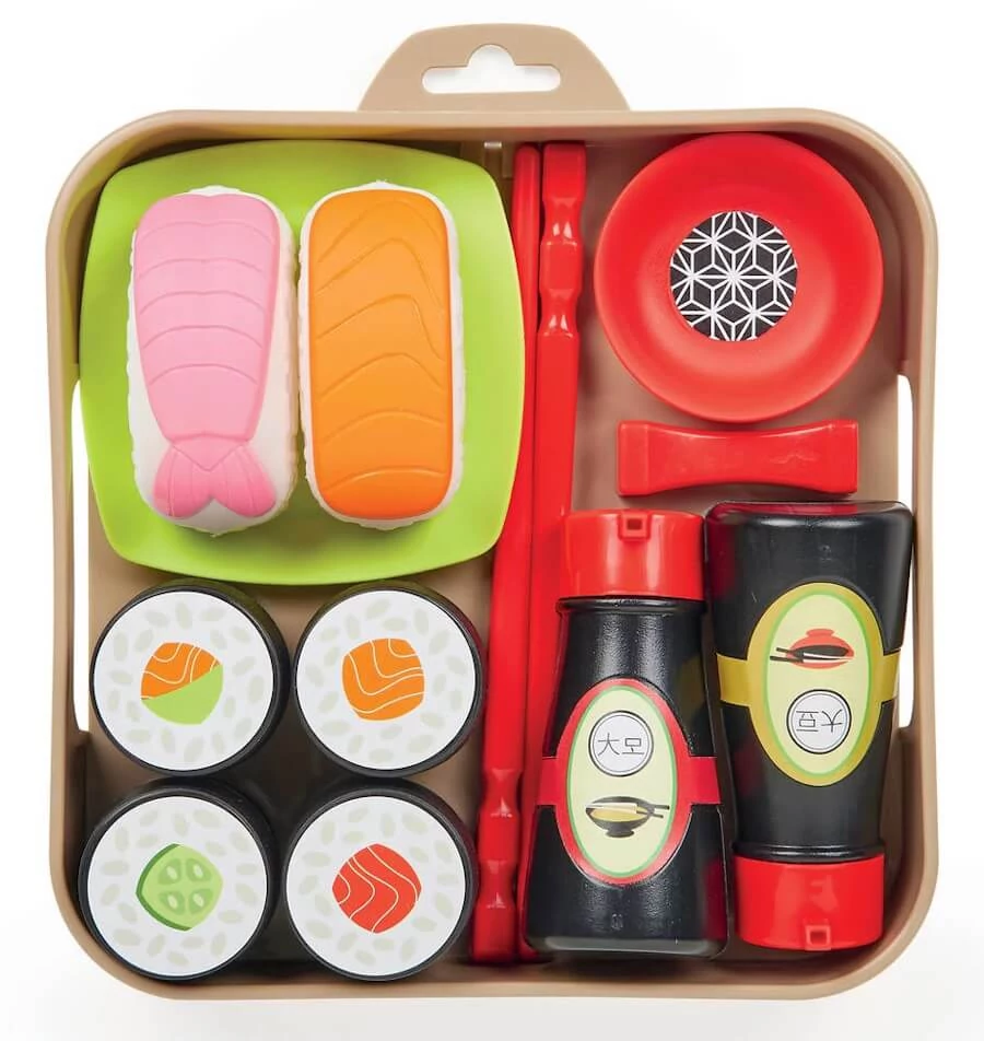 Ez az Écoiffier Chef Sushi tál játékszett (0909) játék fejleszti a gyerekek finommotorikáját, ahogy a gyermekek próbálják megfogni a sushi tekercseket a pálcikával.