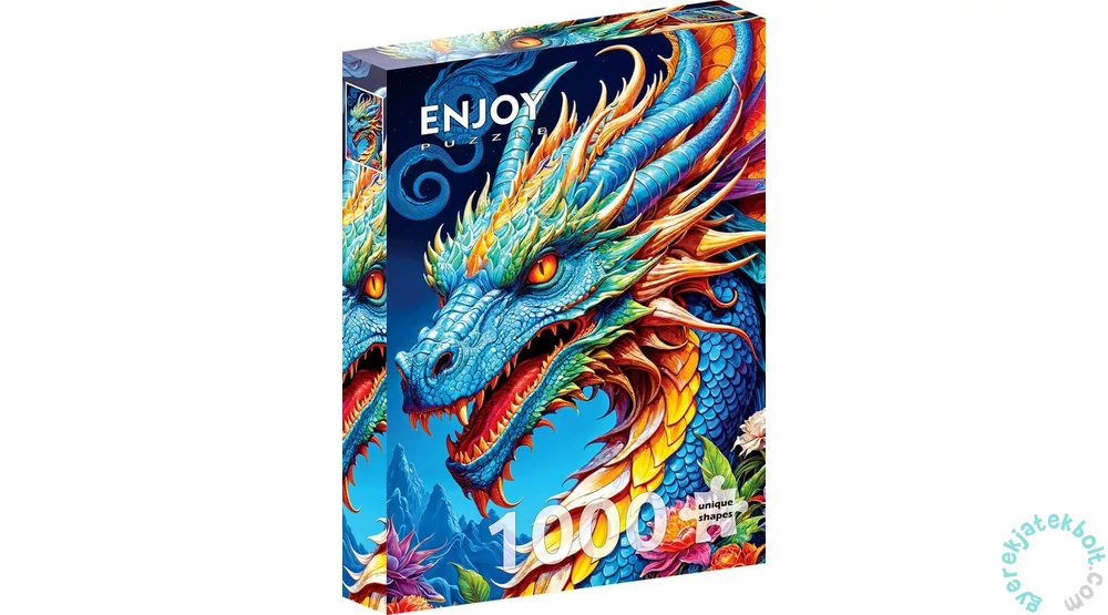 Enjoy 1000 db-os puzzle - Blue Dragon (2143) - Ez az 1000 darabból álló puzzle egy lenyűgöző, kék színű sárkányt ábrázol, mely a légben repül és hatalmas szárnyai messzire kiterjesztve magasba emelkednek. A sárkány ereje és szépsége elbűvölő és lenyűgöző. Pikkelyeinek színe rengeteg színből áll, ami igazán nagy kihívást fog jelenteni a puzzle összerakásának ideje alatt.
