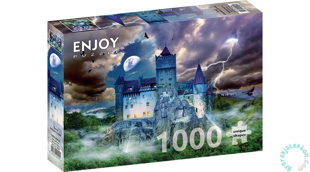 Enjoy 1000 db-os puzzle - Scary Dracula's Castle (2090) Ez az 1000 darabból álló puzzle a híres Drakula-kastélyt ábrázolja, mely Romániában, a Kárpátokban található. A sötét, rejtélyes kastélyt a köd és a sötétség veszi körül, megidézve a vámpírok és a rejtélyek világát.