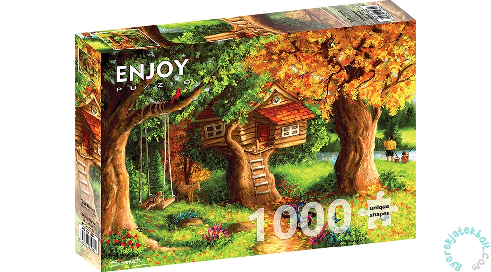 Az Enjoy 1000 db-os puzzle - Tree House kirakó képén egy gyönyörű faházikó látható.