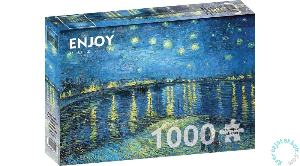 Az Enjoy 1000 db-os puzzle - Vincent Van Gogh: Starry Night Over Rhone (1140) kirakó képén Vincent van Gogh egyik festménye látható, amely az éjszakai Arles-t ábrázolja. A Rhône partjáról festették, amely mindössze egy-két perces sétára volt a Lamartine téren található Sárga Háztól, amelyet akkoriban van Gogh bérelt.