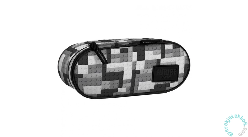 Future by BackUp ovális tolltartó - Blocks (P1ADF38) egyterű belsejében praktikus felhajtható fül is található, melynek egyik oldalán kis cipzáras zseb van, másikon gumifülek tollnak, ceruzának. Az összes írószer elfér benne, amire az iskolában szükséged lehet.