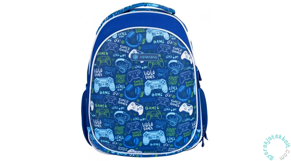 Nagyméretű Game ergonomikus iskolatáska, hátizsák az igazi gamereknek! A hátizsák egy nagyobb és egy kisebb cipzáras rekesszel és két külső hálós oldalzsebbel rendelkezik. Hátoldala ergonomikus, merevített kialakítású, légáteresztő hálós szivaccsal; állítható, szivacsos vállpánttal, mellpánttal. A tetején lévő megerősített fogantyúval kézben is vihető. A hátizsák alja megerősített, kopásálló gumitalpakkal van ellátva. A rekeszekben több kisebb rendszerező zseb, kulcstartó és mobiltartó is található, valamint vállpántját és oldalát is fényvisszaverő elemek díszítik a gyermekek biztonságának érdekében. Praktikus és kényelmes iskolatáska a kisebb korosztály számára. A gyártó innovációja a táska méretre állítható vállpántja. A lakattal jelölt tépőzáras fület 3 - egymás alatt található - pántba lehet beakasztani, ezzel 3 különböző méretű vállpántot kapunk. Így a táskát hosszabb ideig tudja tulajdonosa használni.