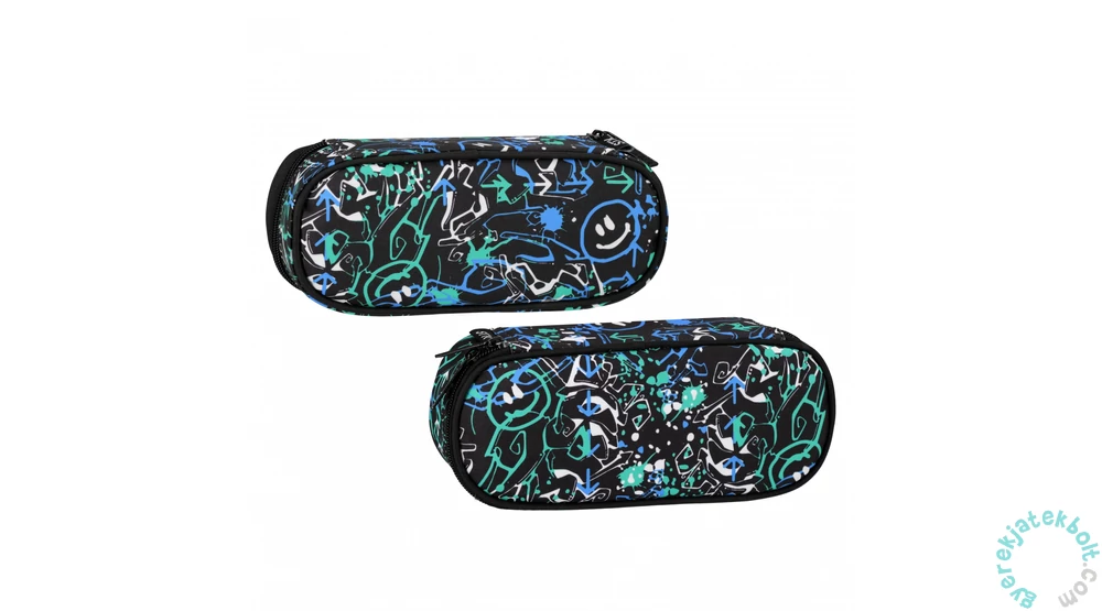 Graffiti ovális tolltartó belseje egyterű, praktikus cipzáras zseb is található benne, így elfér a tolltartóban az összes írószer, amire az iskolásoknak szüksége van. Ez a menő, Graffiti mintájú, szuper színösszeállításban kapható tolltartó az iskolatáskák trendi kiegészítője lehet.