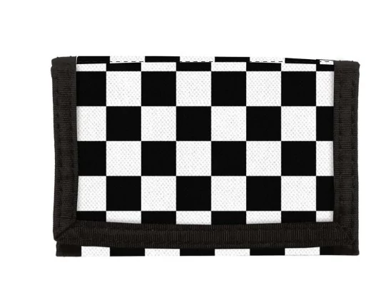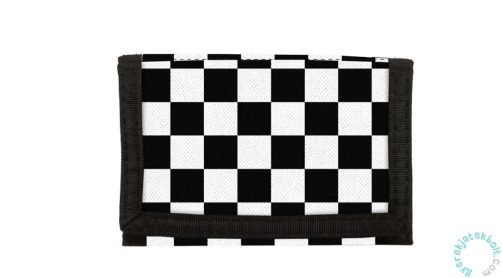 Tépőzáras, szétnyitható BackUp pénztárca - Pepita iskolás fiúknak. Belsejében több rekesz, fényképtartó és egy kis cipzáras zseb található.