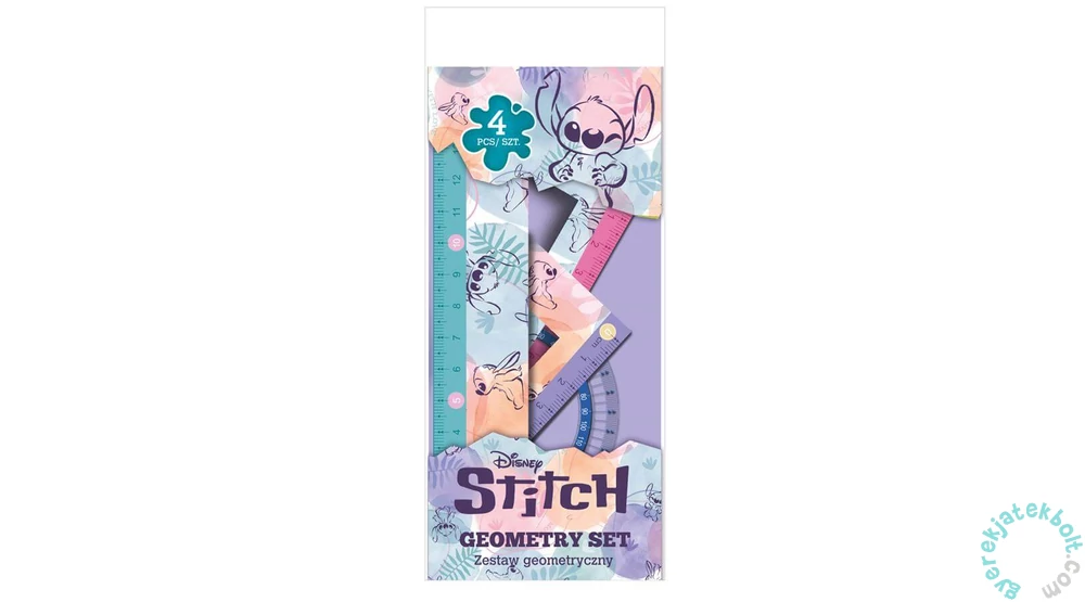 Coolpack - 4 db-os vonalzó szett - Disney Fashion - Stitch - Pastel (91958PTR) iskolai vagy otthoni használatra. A vonalzókon a közkedvelt Stitch karaktere látható. A készlet különböző hosszúságú és típusú vonalzókból áll (1 db egyenes vonalzó, 2 db háromszög vonalzó és 1 db szögmérő). Pasztell színe és kellemes tapintása mókásabbá teszi a tanórákat.