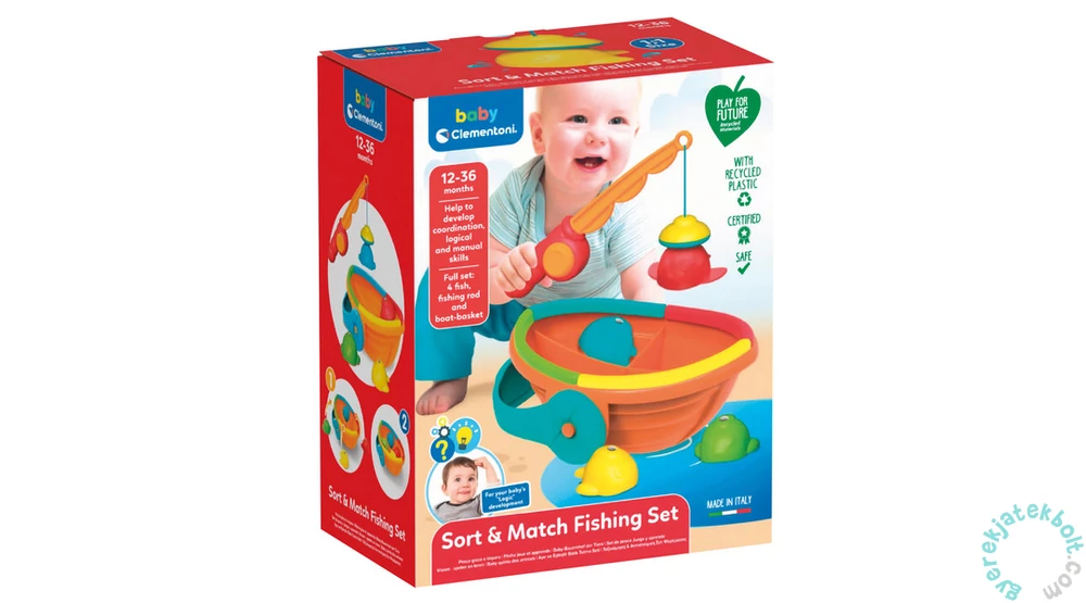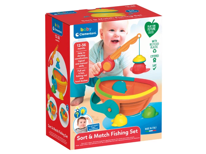 Fedezd fel a játékos tanulás és a fenntarthatóság világát a Clementoni – Play for Future szivárvány horgász szett (17581) segítségével! Ez a vidám, színes horgászjáték kifejezetten a legkisebbek számára készült, hogy játék közben fejlessze a kézügyességet, a koordinációt, valamint a színek és formák felismerését. A gyerekek mágneses horgászbottal próbálhatják meg kifogni a különböző színű halacskákat, így nemcsak szórakoznak, hanem koncentrációjuk és türelmük is fejlődik. A készlet elemei 100%-ban újrahasznosított műanyagból készültek, így a játék nemcsak fejlesztő, hanem környezetbarát is – tökéletes választás a tudatos szülők számára, akik fontosnak tartják a fenntarthatóságot.