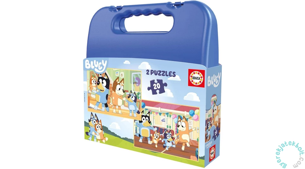 Az Educa 2 x 20 db-os puzzle bőröndben - Bluey (20348) kirakók képein kedvenc kis kék kutyusod elevenedik meg.