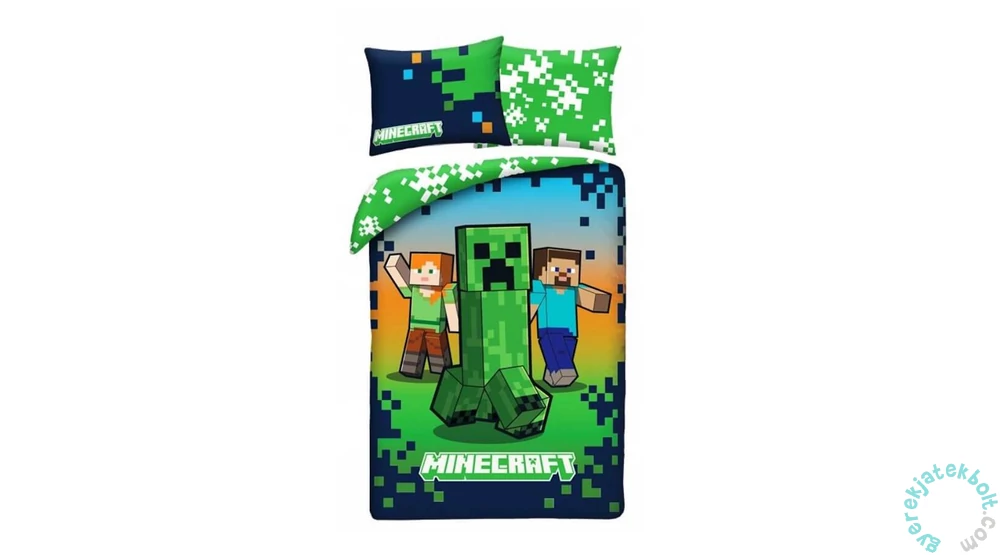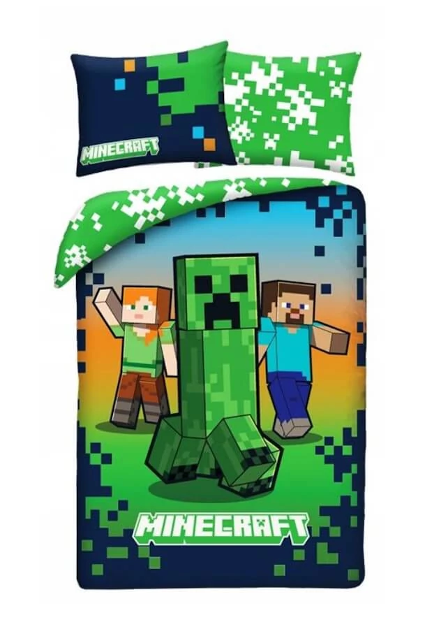 Stílusos, Minecraft mintás ágyneműhuzat garnitúra klasszikus pixeles dizájnnal, igazi gamereknek. A kétrészes szett tartalma: 1 db 140 × 200 cm-es paplanhuzat és 1 db 70 × 90 cm-es párnahuzat. A huzatok mindkét oldala mintás és cipzáras kialakítású, így praktikus és dekoratív választás. A mikroszálas anyag puha, bőrbarát felülete és látványos pixelgrafikái modern hangulatot visznek a szobába.
