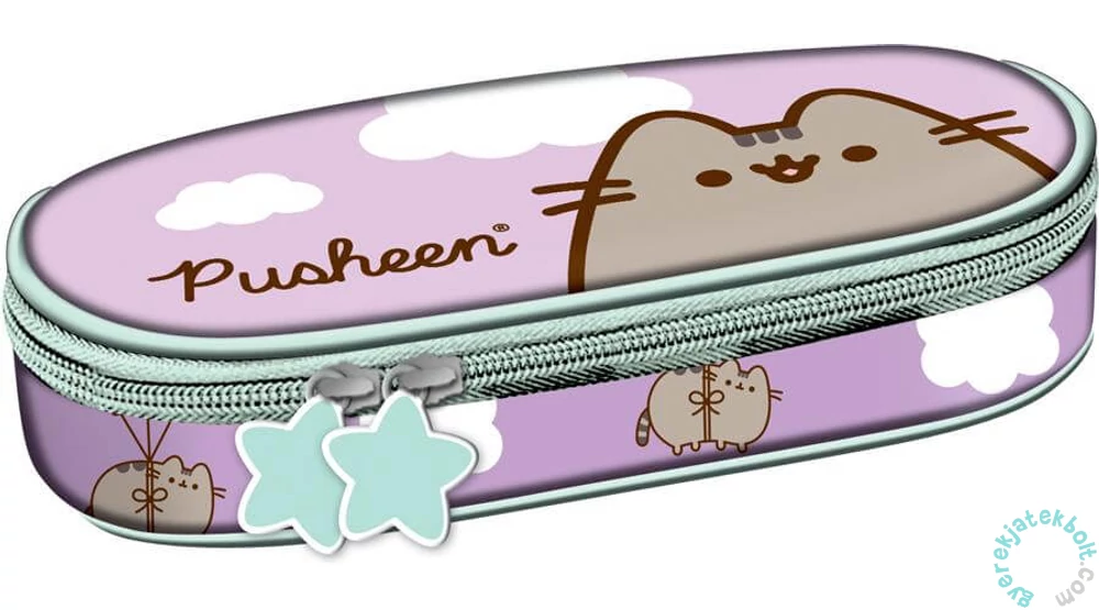 Pusheen cicás ovális tolltartó - Violetegyterű belsejében praktikus cipzáras zseb is található, így elfér benne az összes írószer, amire az iskolásoknak szüksége van. Aranyos, cicás mintájával és lila szín összeállításával az iskolatáskák trendi kiegészítője.