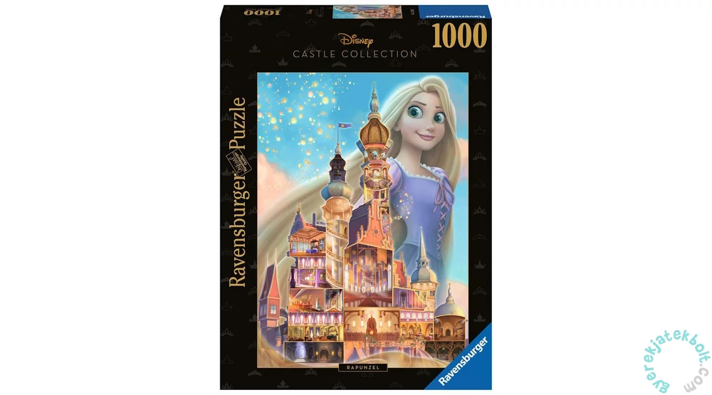 A Ravensburger legújabb kollekciója a Disney Castle, amely a Disney 100. évfordulója alkalmából készült. Ezen a kirakón Aranyhaj látható a gyönyörű, részletgazdag kastélyával.