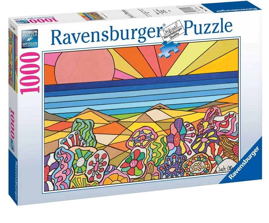 A Ravensburger 1000 db-os puzzle - Kavicsok Hawaii (12001240) kirakó képén Jack Ottani vidám absztrakt alkotását láthatjuk.
