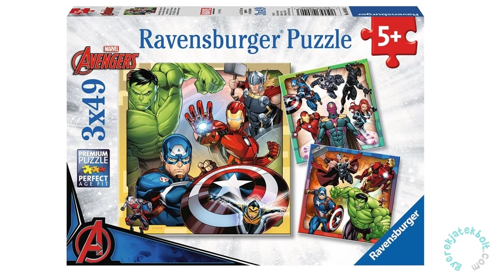 Fedezd fel a kirakózás izgalmas világát! A Ravensburger 3 x 49 db-os puzzle - Avengers - Bosszúállók (08040) kiváló választás lehet, ha szórakozásra és kihívásra vágysz! Ez a játék remek szórakozást kínál minden korosztálynak, miközben segít fejleszteni a problémamegoldó képességet, a figyelmet és a türelmet. Merülj el a különböző kirakóképek között, és válaszd ki azt, amelyik igazán pihentető élményt nyújt!