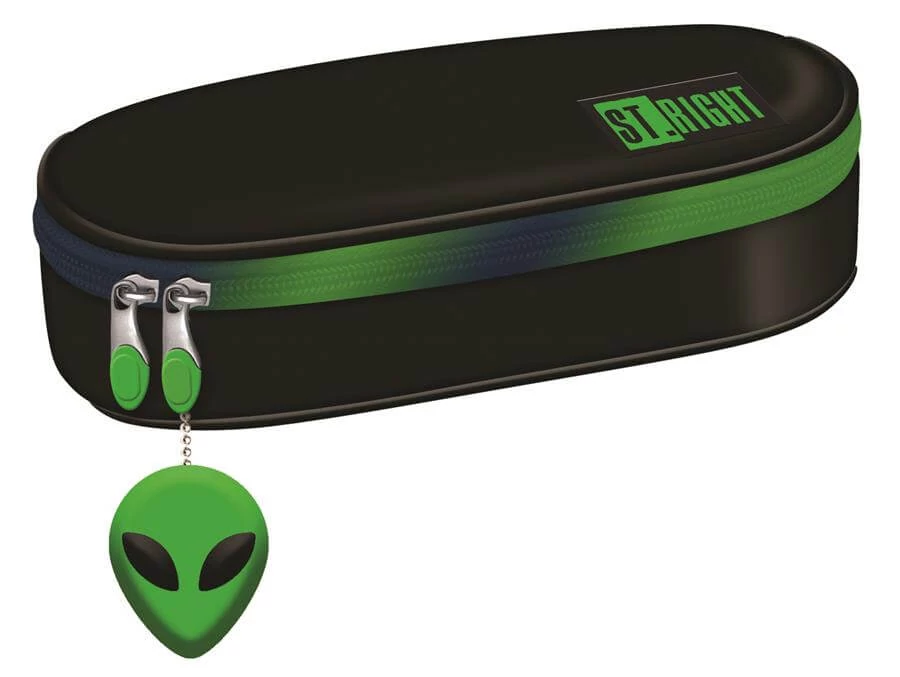 St.Right - Green Power ovális tolltartó (683350) egyterű belsejében praktikus cipzáras zseb is található, így elfér benne az összes írószer, amire az iskolásoknak szüksége van. Menő mintájával az iskolatáskák trendi kiegészítője.