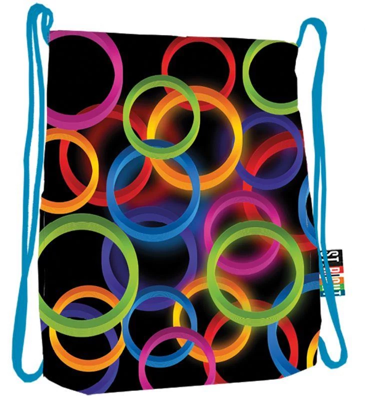 St.Right - Neon Circles zsinóros hátizsák (613623) az elején trendi mintával. A teteje zsinórral szűkíthető és egy külső cipzáros zsebben tárolhatóak az apróságok. A puha sodrott zsinór szolgál vállpántként is. Könnyű és divatos hátizsák kicsiknek és nagyoknak egyaránt.