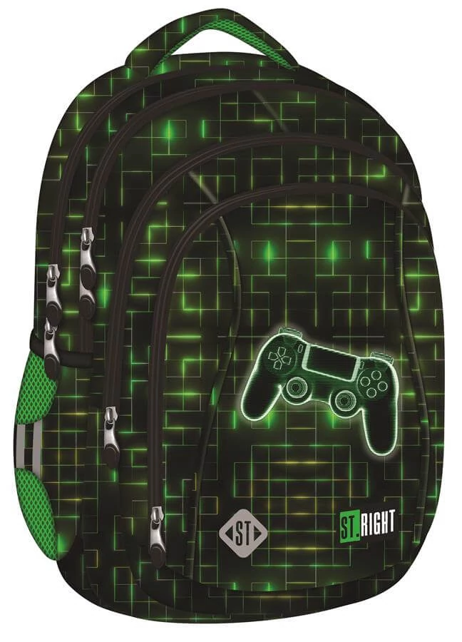 A St.Right - Neon Pad hátizsák, iskolatáska - 4 rekeszes (681707) az iskolás fiúk ruhatárának vagány kiegészítője. A hátizsák 4 nagyobb méretű, cipzáras rekesszel és két kisebb hálós oldalzsebbel rendelkezik. Hátoldala ergonomikus kialakítású, légáteresztő hálós szivaccsal. A belső zsebekben több kisebb rendszerező zseb, kulcstartó és mobiltartó is található. Állítható vállpántja szivacsos, légáteresztő hálós fedőréteggel, alsó része szivaccsal megerősített. A hátizsák anyaga vízálló, a tetején lévő megerősített fogantyúval kézben is vihető. A táskán fülhallgató kimenet is található. A St.Right - Neon Pad hátizsák divatos, fiatalos, ezzel a táskával nagyon menő leszel a suliban!