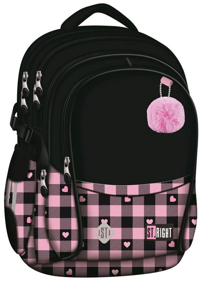 St.Right - Pink Checkered ergonomikus iskolatáska, hátizsák - 3 rekeszes (680366)